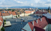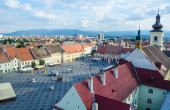Piata Mare (duży plac) w Sibiu, Rumunia (czas letni)