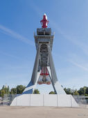 Fantastyczne niezwykły cień z wieża telewizyjna Ostankino w chmurze snowy