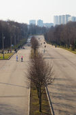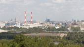 Fantastyczne niezwykły cień z wieża telewizyjna Ostankino w chmurze snowy