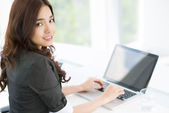 piękne Azjatki studentka komputera przenośnego przy stole