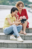 Kobieta fotograf biorąc zdjęcie starszy wietnamskie kobiety i jej córka dorosły