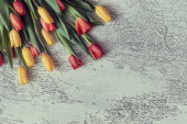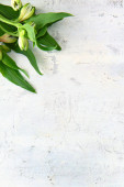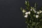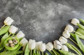 Widok z góry kwiatów białych tulipanów na obrus na czarnej powierzchni