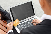 Zdjęcie "Człowiek z karty kredytowej i laptop przy stole" może być wykorzystywane do celów osobistych i komercyjnych zgodnie z warunkami zakupionej licencji Royalty-free. Obraz jest dostępny do pobrania w jakości wysokiej rozdzielczości do 5760x3840.