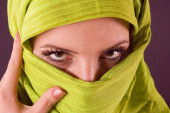 młodych pięknych kobiet muzułmańskich z rąk w fron