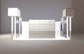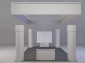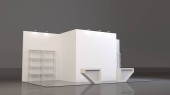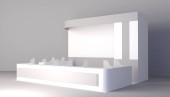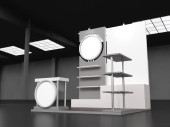 Stoiska wystawowe, Wizualizacja 3d renderowania wystawa sprzętu, miejsca reklamowe na białym tle