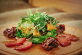 Zdjęcie "Sałatka z Turcji papryka pieczarki, cornichots i warzyw, na tle drewniane dostock, piękne serwujemy dania kuchni, przytulne tabeli układanie" może być wykorzystywane do celów osobistych i komercyjnych zgodnie z warunkami zakupionej licencji Royalty-free. Obraz jest dostępny do pobrania w jakości wysokiej rozdzielczości do 5760x3840.