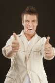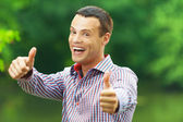 Zdjęcie "przystojny mężczyzna podnosi się kciuk" może być wykorzystywane do celów osobistych i komercyjnych zgodnie z warunkami zakupionej licencji Royalty-free. Obraz jest dostępny do pobrania w jakości wysokiej rozdzielczości do 5760x3840.