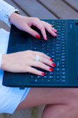 piękna młoda kobieta z laptopa leży na ciepły pled