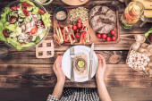 Zdjęcie "Świeże sałatki w ręce widok z góry" może być wykorzystywane do celów osobistych i komercyjnych zgodnie z warunkami zakupionej licencji Royalty-free. Obraz jest dostępny do pobrania w jakości wysokiej rozdzielczości do 5760x3840.