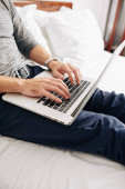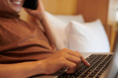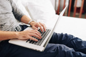 Zdjęcie "Skadrowana biznesmen picie whisky i działa na laptopie w pokoju hotelowym" może być wykorzystywane do celów osobistych i komercyjnych zgodnie z warunkami zakupionej licencji Royalty-free. Obraz jest dostępny do pobrania w jakości wysokiej rozdzielczości do 5760x3840.