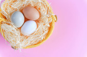 Zdjęcie "Pisanek w różnych kolorach, Jaja przepiórcze i białe pióra na żółtym tle, widok z góry. Koncepcja Wakacje Wielkanoc. Z bliska." może być wykorzystywane do celów osobistych i komercyjnych zgodnie z warunkami zakupionej licencji Royalty-free. Obraz jest dostępny do pobrania w jakości wysokiej rozdzielczości do 5760x3840.