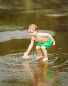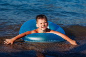 Chłopiec jest pływanie w morzu.