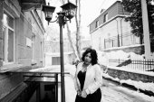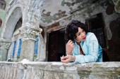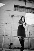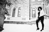 Stylowe Afroamerykanin plus rozmiar modelu siedzi na czerwone krzesło ou