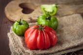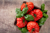 Sałatka caprese, wykonane z plasterki świeżej mozzarelli, pomidorami i bazylią