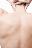 Młody kaukaski nastoletniego chłopaka, który ma boli ramię