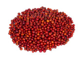 Nasiona pieprzu różowego na białym tle na białym tle. Widok z góry. Leżał z płaskim