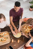 wysoki kąt widoku pięknych młodych kobiet w domu jedzenie pizza