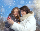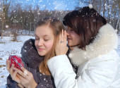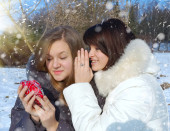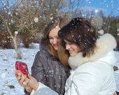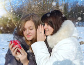 dwie dziewczyny w zimie rzucać siebie śnieg