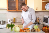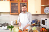 Zdjęcie "Mężczyzna siedzący przy stole w kuchni przed otwartym laptopa, skoncentrowane na papierkową robotę, płacenia rachunków krajowych, przy użyciu aplikacji bankowości online, planowanie budżetu domowego." może być wykorzystywane do celów osobistych i komercyjnych zgodnie z warunkami zakupionej licencji Royalty-free. Obraz jest dostępny do pobrania w jakości wysokiej rozdzielczości do 5760x3840.