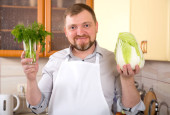 Zdjęcie "Człowiek w kuchni jest Przygotowanie sałatką ze świeżych warzyw. Potrawy wegetariańskie." może być wykorzystywane do celów osobistych i komercyjnych zgodnie z warunkami zakupionej licencji Royalty-free. Obraz jest dostępny do pobrania w jakości wysokiej rozdzielczości do 5760x3840.