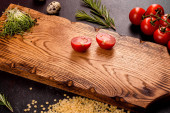 Składniki na ciemny kamień tabeli do gotowania żywności.
