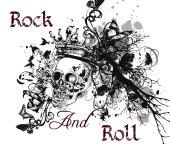 graficzne projektowanie mody z rock hasłem rock and roll na t-shirt na czarnym tle