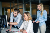 Zdjęcie "Dział IT, praca w biurze. Ludzie programowania na komputerze" może być wykorzystywane do celów osobistych i komercyjnych zgodnie z warunkami zakupionej licencji Royalty-free. Obraz jest dostępny do pobrania w jakości wysokiej rozdzielczości do 5760x3840.