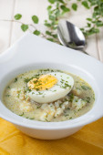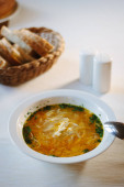 Miskę zupy z kurczaka z kwaśną śmietaną na ciemnym tle. Rosół z kurczaka pyszne 1