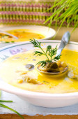 Zdjęcie "Miskę zupy z kurczaka z kwaśną śmietaną na ciemnym tle. Rosół z kurczaka pyszne 1" może być wykorzystywane do celów osobistych i komercyjnych zgodnie z warunkami zakupionej licencji Royalty-free. Obraz jest dostępny do pobrania w jakości wysokiej rozdzielczości do 5760x3840.