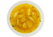 Miskę zupy z kurczaka na ciemnym tle. Rosół z kurczaka pyszne 2
