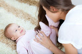 Zdjęcie "młoda matka trzyma jej córeczkę na ręce" może być wykorzystywane do celów osobistych i komercyjnych zgodnie z warunkami zakupionej licencji Royalty-free. Obraz jest dostępny do pobrania w jakości wysokiej rozdzielczości do 5760x3840.