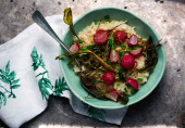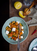pieczona marchewka i fregola sałatka... Selektywny fokus