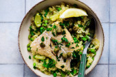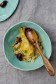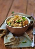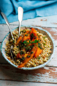 pieczona marchewka i fregola sałatka... Selektywny fokus