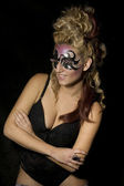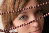 piękna dziewczyna w białych gałązka, trzymając maskę