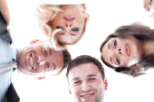 zbliżenie trzech młodych ludzi podnoszących ręce do przodu