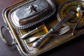 Stare srebrne naczynia z Akcesoria do kuchni