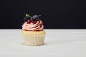 Selektywny fokus słodkie babeczki z kremem na białym tle