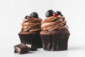 Selektywny fokus słodkie babeczki z kremem na białym tle