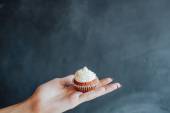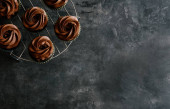 Widok z góry aranżacji smaczne babeczki na białym tle