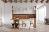 Zdjęcie "Biały i brązowy na antresoli wnętrze kuchni" może być wykorzystywane do celów osobistych i komercyjnych zgodnie z warunkami zakupionej licencji Royalty-free. Obraz jest dostępny do pobrania w jakości wysokiej rozdzielczości do 5760x3840.