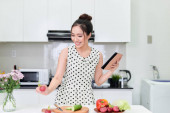 Zdjęcie "Młoda kobieta wietnamski smartphone w domu za pomocą słuchawki" może być wykorzystywane do celów osobistych i komercyjnych zgodnie z warunkami zakupionej licencji Royalty-free. Obraz jest dostępny do pobrania w jakości wysokiej rozdzielczości do 5760x3840.