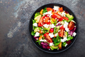 Zdjęcie "Warzywne danie, Sałatka z awokado, papryki, pomidorów, włoski mix, świeża sałata, ser feta i orzeszkami pinii. Zdrowe jedzenie. Widok z góry" może być wykorzystywane do celów osobistych i komercyjnych zgodnie z warunkami zakupionej licencji Royalty-free. Obraz jest dostępny do pobrania w jakości wysokiej rozdzielczości do 5760x3840.
