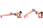 Skoncentrowane dziewczyna piękny fitness Odzież sportowa wykonując robi deski na białym tle
