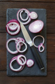 Zdjęcie "Kolorowy, czerwoną kapustą i czerwonej cebuli ze szczypiorkiem na stół łupków" może być wykorzystywane do celów osobistych i komercyjnych zgodnie z warunkami zakupionej licencji Royalty-free. Obraz jest dostępny do pobrania w jakości wysokiej rozdzielczości do 5760x3840.