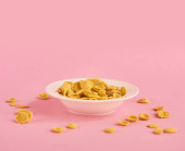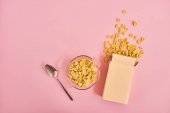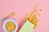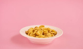 Płyta różowy z zbóż na różowym tle. Projektowanie makiety z miejsca do wprowadzania tekstu