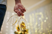 Ręce człowieka, wypełnienie ze szkła z czerwonego wina