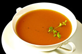 zupa pomidorowa w misce biały