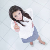 biznes kobiet osiąga wyciągnął rękę do uzgadniania. na białym tle na białym tle.