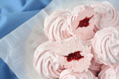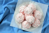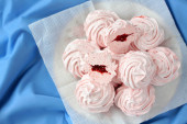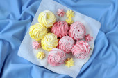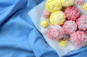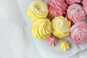 Kolorowe pianki na danie. Draperie i serwetka jest pod spodem.