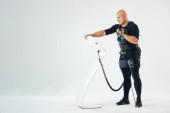 człowiek w biometrycznych fitness kamizelki ciężarkach podczas treningu w siłowni ems